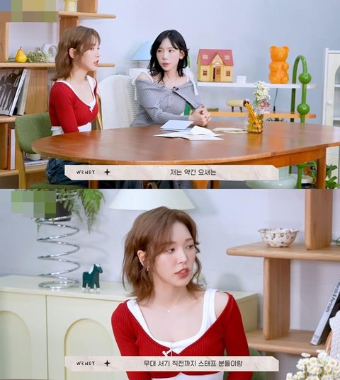 웬디는 요즘 무대 올라 가기 전에 무대 아래에서 스탭분들이랑 최대한 수다 떨고 올라간대