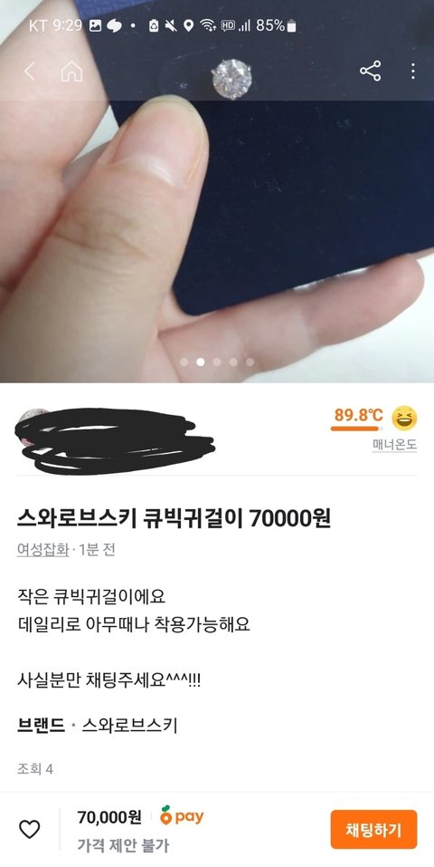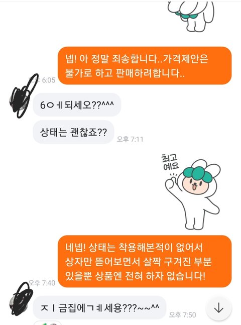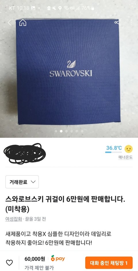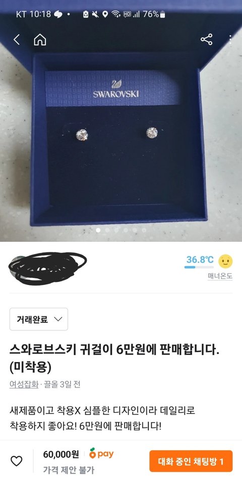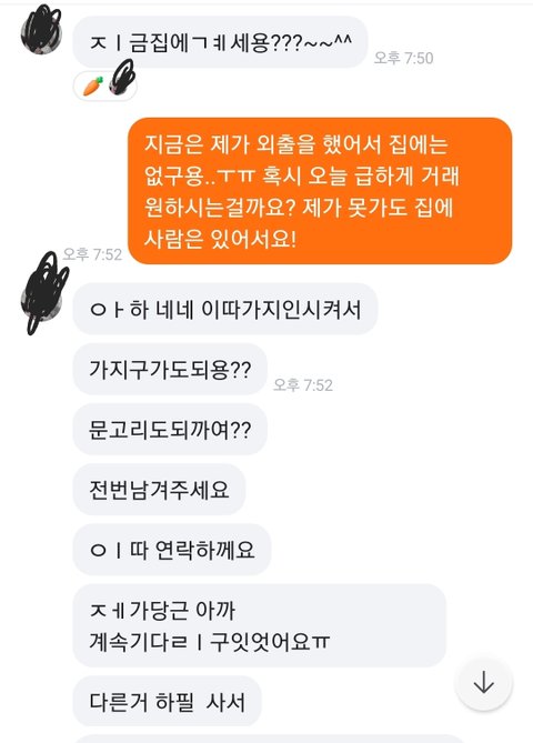 당근마켓에서 황당한 경험을 해서 한번 올려봅니다 ㅋ 이주일 전쯤 전남친 한테 선물받았던 귀걸이가 알이 좀 커서 기존에 알 큰거 쓰다가 귀가 염증이 크게 난 후로 아주 작은 것만 하고 있어서 한번도 안사용해본 미착용이라 (착용해보지도 않았습니다.) 시중에서 10만원 상당에 판매를 하고 있길래 저는 중고 이기도 하고 그래서 좀 저렴하게 팔자 하는 마음에 6만원 정도로 올리고 가격제안을 불가로 해놓았습니다. 그러다 토요일(6일)에 사겠다고 하신 분이 있으셔서 연락을 주고 받는데 제가 남자친구랑 데이트중 인지라 바로바로 답은 못드리고 조금씩 텀이 생긴 상태로 답을 드렸었습니다. 그런데 이분이 자꾸 네고 되냐 조금 저렴하게 해달라, 얼마까지 되냐 등의 문의를 계속 하셔서 저는 거래제안불가 라고 미리 해놓았는데도 계속 물어보시니 그냥 안팔아야겠다 하는 마음 으로 죄송하다 하고 넘겼습니다. 그런데 이분이 그냥 6만원에 사겠다 하시고 비대면 문고리 거래 원하셔서 그 정도로 급하게 어디 선물 주실 건가..싶어서 그냥 그날 (밤10시쯤)에 문고리에 걸어두고 지인이란 분이 가져가시고 팔았습니다. 오늘자로 출근하면서 다른 물건도 몇개 올렸기에 끌어올리기를 또 할려고 당근을 들어가 보았다가 제게서 사간 분이 물건을 올리셨더라구요? ㅋ보니까 제꺼 사진 고~대로 가져오시면서 만원 더 비싸게 팔고 계시더라구요~와...ㅎㅎㅎ당근을 몇번 하진 않았지만 재당근..심지어 더 비싸게 파는 명품 리셀러도 아니고 당근 리셀러는 첨이라 황당한 맘에 글 올려봅니다...ㅎ 일단 신고 넣었구요 오전에 신고 넣고 오후에 확인하니 숨겨진 게시판 이라고 글을 숨기긴 했는데 나중에 또 올라올 것도 같고 이분이 물품을 굉장히 많이 올리던데..다 이렇게 구매후 재당근 하시는 분 같아서 당근 하시면서 이런 경험 많았는지 궁금한 맘에 물어봅니다...ㅋ