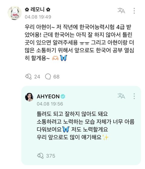 노력하는 팬이랑 그걸 알아주는 아이돌 너무 보기 좋다