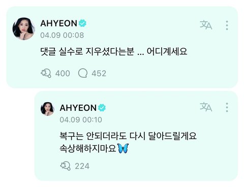 팬이 댓글 달아준거에 답글 달렸는데 그걸 실수로 지움