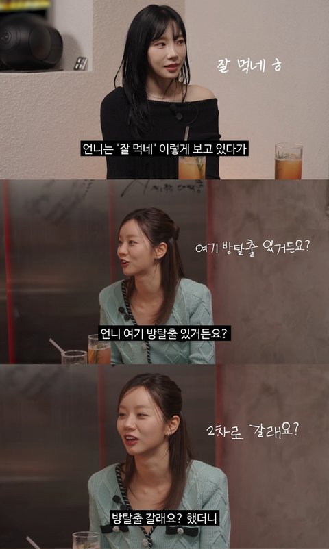 다 먹고 혜리가 뭐할까? 했는데 태연 속마음이 다 보였던 혜리