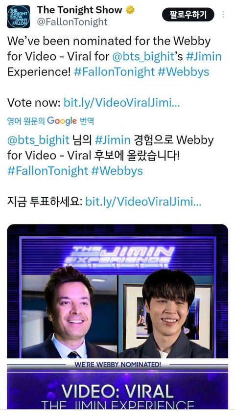 ㅋㅋㅋ 여기야여기 9글 아이디만 있으면 되더라고 https://twitter.com/FallonTonight/status/1777833873881047347?t=-O-3BFN_rU_DGzPjUuf9Pw&s=19