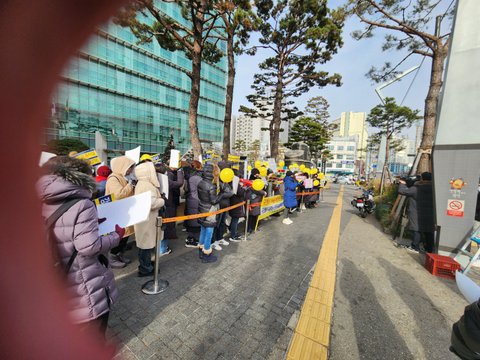 이후 우리는 시위를 하고 공단 이사장과 구청과의 대화를 거쳤습니다. 이사장은 3월까지 알바로 지내고 2명은 정직원으로 전환하며, 다른 분들은 공단과 구청에서 팀을 만들어 해결하겠다고 약속했습니다. 하지만 2월에 받은 통보는 변함이 없었고, 3개월마다 계약으로 하루 2~3시간 알바로 일하라는 내용이었습니다.