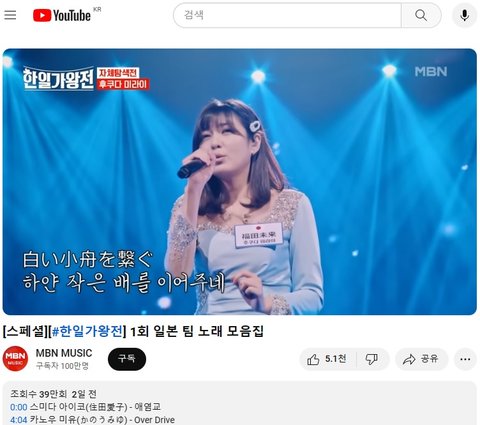 (사진7 설명) 후쿠다 미라이(福田未来) - '나의 노래' 한일가왕전1회 YouTube MBN 동영상 화면 캡춰