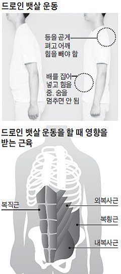 일본에서 시작돼 최근 국내에서도 주목 받고 있는 '드로인(draw in) 뱃살 운동'인데, 움직이지 않아도 되고 앉은 자리에서도 할 수 있다. 이 운동만 2주일간 한 뒤 허리 둘레가 7㎝ 줄었다거나, 매일 아침 걷기 운동을 해도 잘 빠지지 않던 체중이 이 운동을 병행하니 6㎏이나 빠졌다는 체험 사례가 있다.