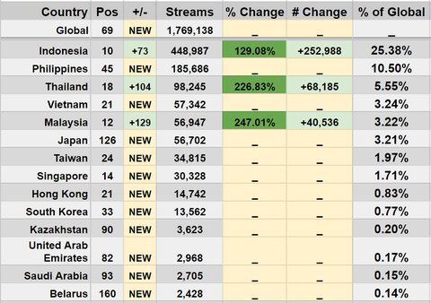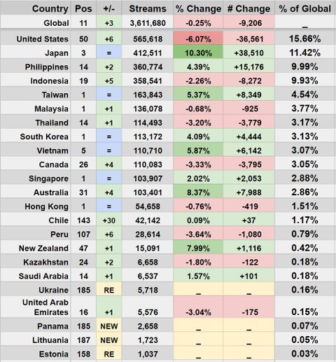 아일릿과 베몬 스포티파이 국가별 비중 차이