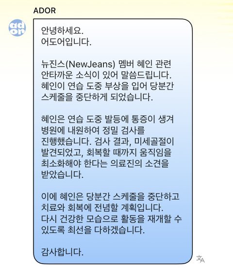 혜인 다쳐서 뉴진스 그럼 컴백미뤄짐?