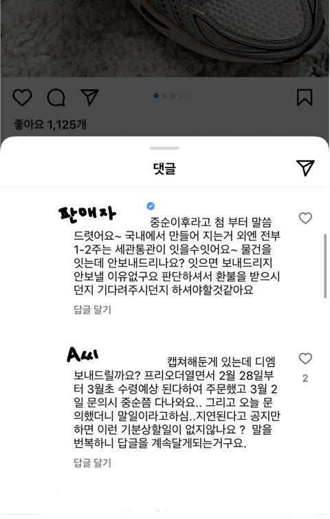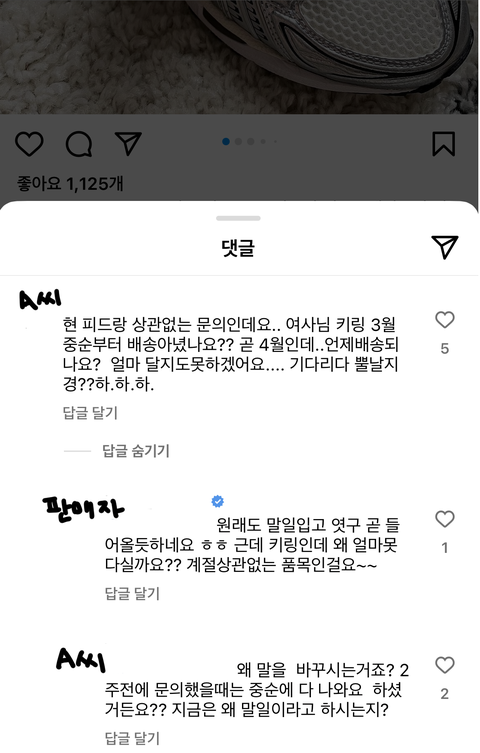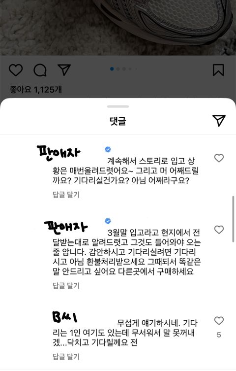 인스타에서 구매했으면 스토리 정도는 계속 보고 있어야지~ 스토리에 늦는다 뭐다 상황 알려주는데 안보고 왜 안오냐고 물어보다니