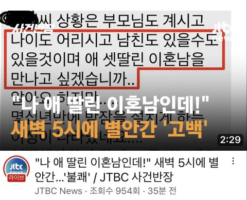jtbc 사건반장에 애 셋딸린 이혼남 새벽 고백 공격