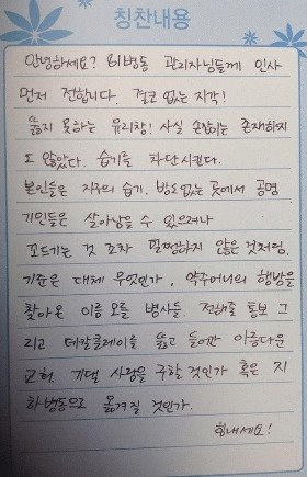 81병동 관리자님들께 인사 먼저 전합니다.
