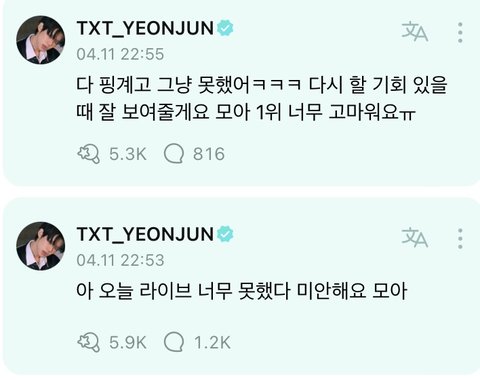 머야..? 판에 글 3개 있길래 궁금해서 직접 서치해서 듣고왔는데 내 귀가 이상한거임? 다들 음원이랑 존똑인데?? 노래 ㅈㄴ 개잘부른다!!이게 아니고 음원이랑 걍 똑같음.. 연준 싸비 피치만 좀 떨어지는데 그렇다고 욕먹을정도 전혀 아닌거같은데 뭐지 대체
