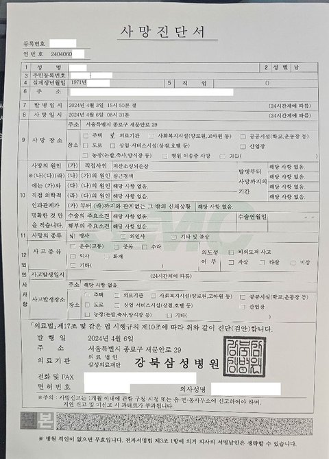 2024년 4월 3일 오후 5시 넘어서 강북삼성병원 응급실로부터,