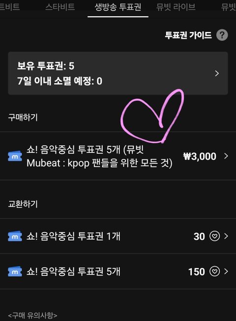 뮤빗 150개 있으몀 투표권 5장 교환가능