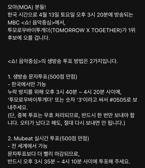 그리고 문자투표가 있는데 한국에서만 가능하니