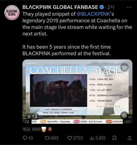 이렇게 블핑 보여줘서 넘 좋음 코첼라도 블핑 많이 좋아하나봄