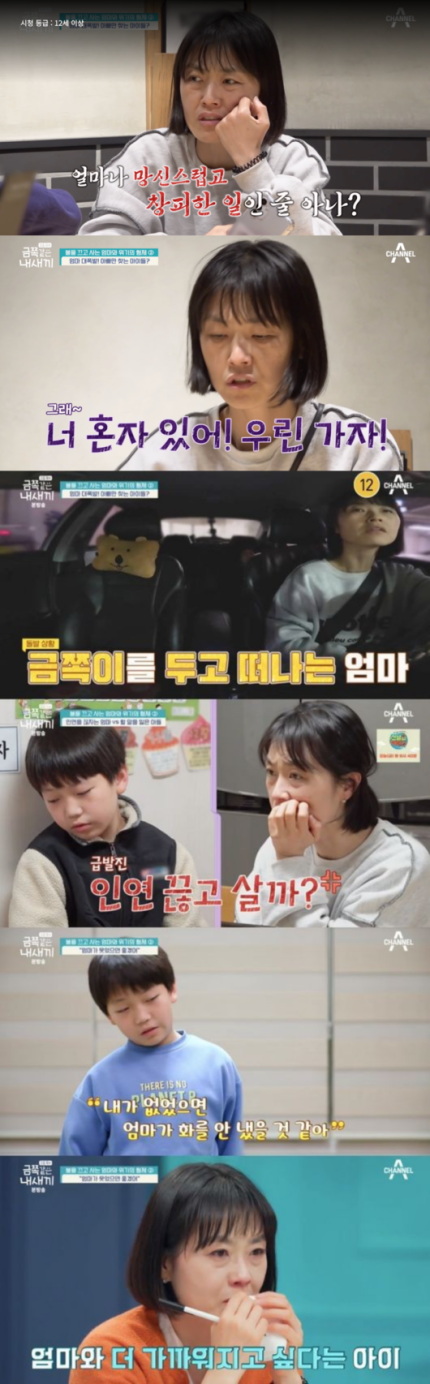 제작진의 차를 타고 집에 돌아온 첫째는 엄마와의 대화를 거부했다. 급기야 과거까지 들먹이며 일방적으로 혼을 내던 엄마는 “도대체 너한테 엄마는 어떤 존재냐”고 물었다. 첫째는 “잘 안 놀아주는 사람”이라고 답했다. 그 말에 급발진한 엄마는 “인연 끊고 살자. 내일 당장 이 집에서 나가”라고 말해 충격을 안겼다.