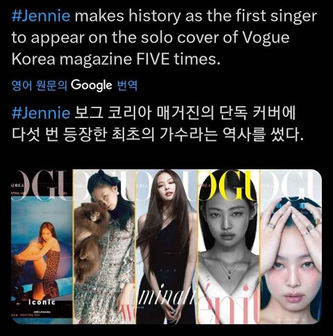 제니 역대 최다 보그코리아 단독 커버 장식한 가수래 폼 ㅁㅊㄷ