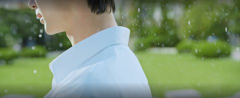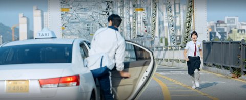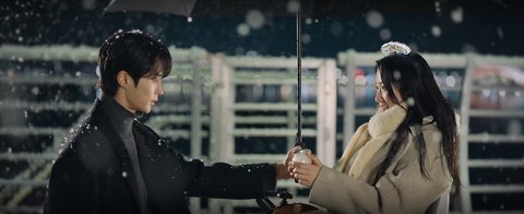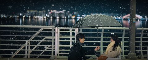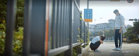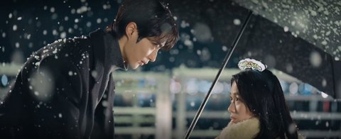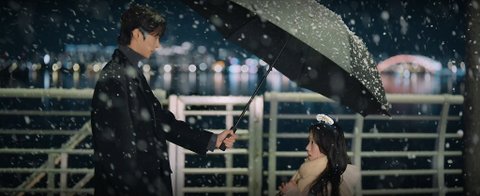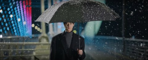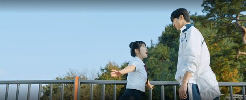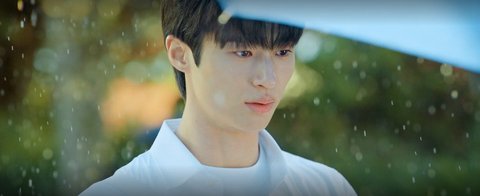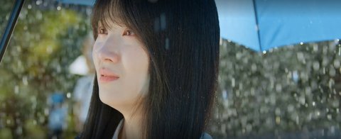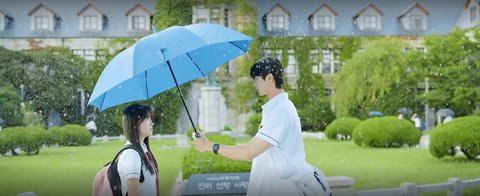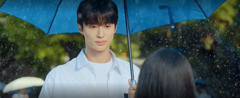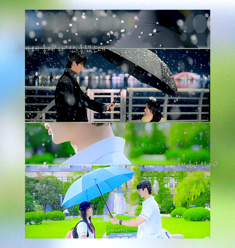 무릎 꿇어서 눈높이를 맞추며 우산 가져가라는 선재에게