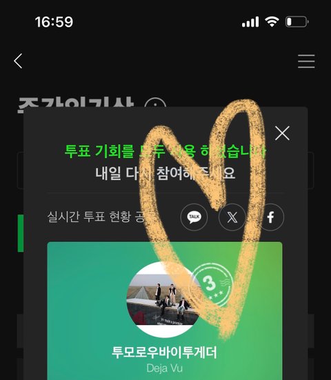 우리 이용자수 진짜 꽤 붙어서 더 올릴 수 있는 기회니까 다들 스밍 놓지말구 계속 돌려줘 남은 컨텐츠들도 스밍 돌리면서 열심히 즐기자! 주간인기상 투표도 부탁해