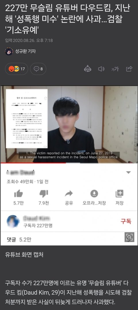 사원 건립 한다는 애는 도대체 무슨 낯짝으로 유튜브를 계속 하는 거임? 기소유예까지 받은 성범죄자 주제에. 저런 애가 주택가, 학교 근처에서 사원 짓고 활동할 생각하니까 개역겹네.