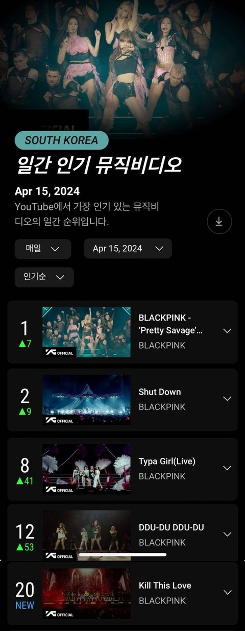 오늘 한국 데일리 뮤직 비디오 순위 줄세우기함 순위 오른 거 봐..