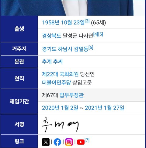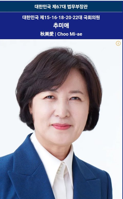 (사진4~5 설명) 추미애(秋美愛, Choo Mi-ae) 국회의원 <출처 : NAVER 나무위키>