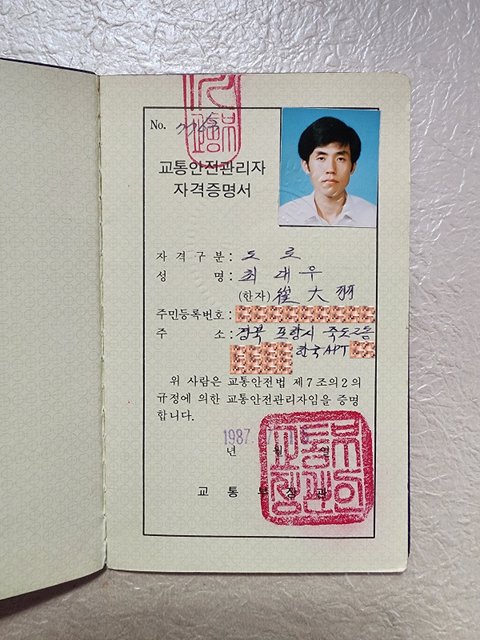 (사진9,10 설명) 최대우 교통안전관리자 자격증명서