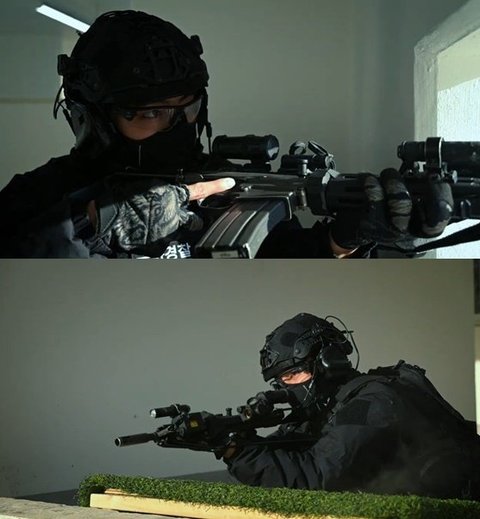 우와 미쳤다 밑에 총쏘는것도 뷔겠지 눈만 보이는데도 잘생겼다