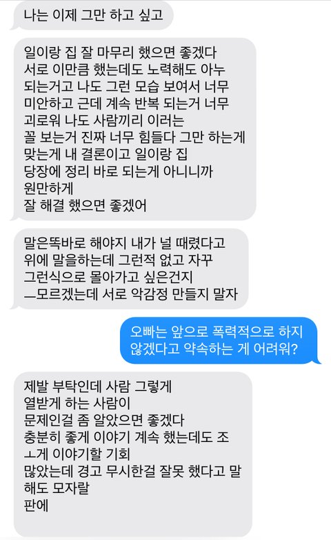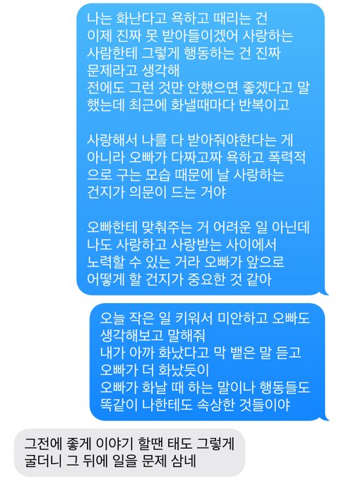 기회를 한 번 더 주겠다고... 제가 잘못만 안하면 자기가 이럴 일 없다고... 하... ㅠ