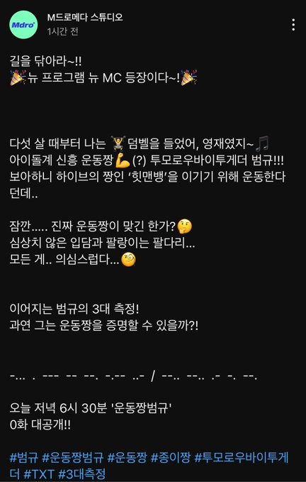 얘들아 오늘 빠더너스랑 운동짱 뜬다