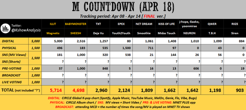 1000점 차이에 아무리 생방송 투표 1000점 다 가져가도 숏츠점수랑 방송점수 아일릿 못이길듯…오늘이 진짜 기회였는데