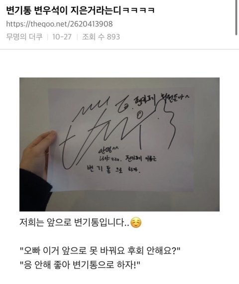 팬 애칭이 변기통이 뭐냐… 싫어하는 사람도 그렇게 안부르겟다..