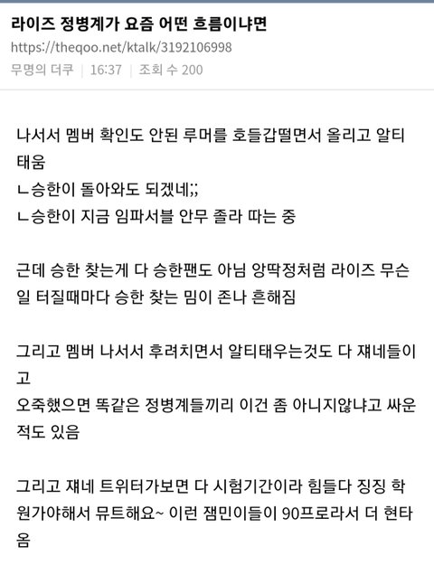 요즘 라이즈 정병계 흐름 ㄹㅇ 이거임