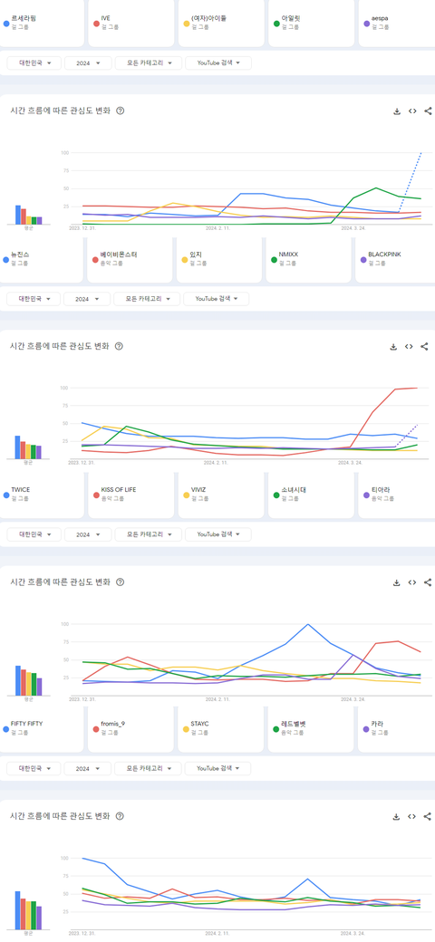 2024년 현재까지 국내 유튜브에서 가장 많이 검색된 케이팝 여자아이돌그룹 TOP20