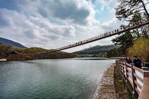 출렁다리는 머리가 어지러울 정도로 흔들립니다.