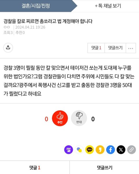 https://youtu.be/sU3jSpVj55c?si=h5vc9uEfMWTMpv5z 반격은 정당방위로 법 개정합시다!! 그러지 않으면 범죄자들이 기고만장 해져서 타인을 패고 다니잖아요 큰~~ 문제죠