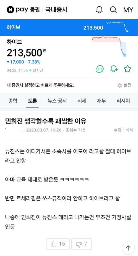 네이버 주식종목토론방인데 먼가 알고있었나보네 ㅋㅋㅋ