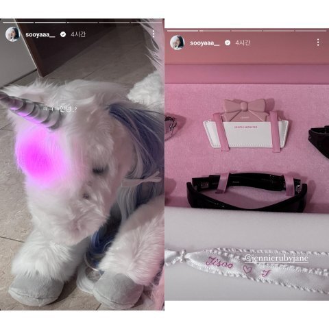 제니 스토리 보니까 유니콘 머리 쓰다듬으면 빛나면서 소리나던데 갖고싶다 ㄹㅇ 제니 지인들 진심 개부러움ㅜ.비비 인스타에도 올라왔던디
