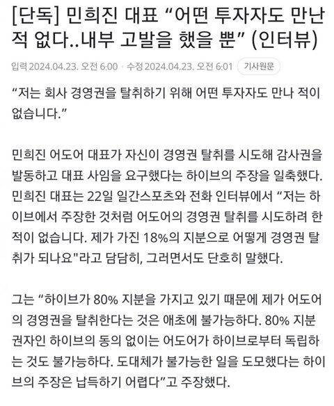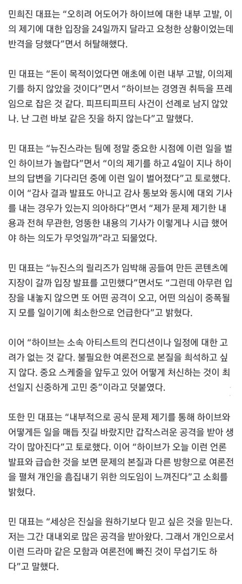 민희진 반박 기사 뜸