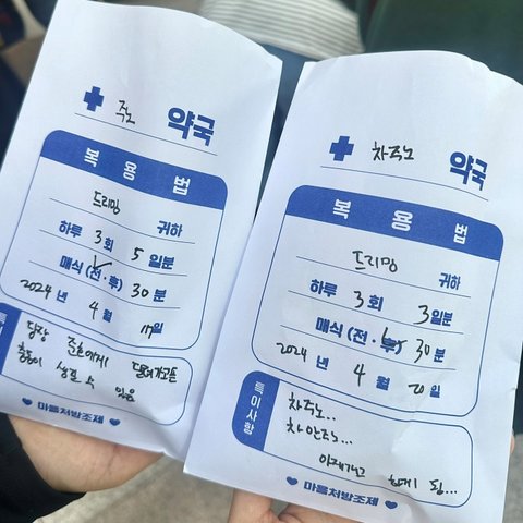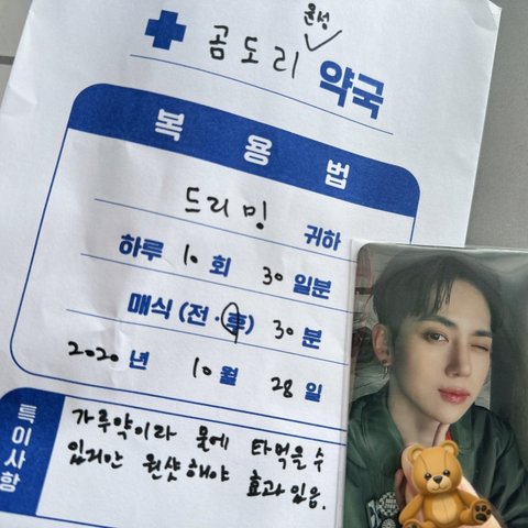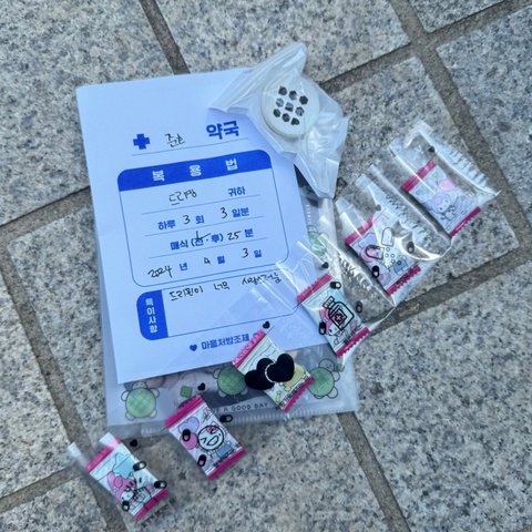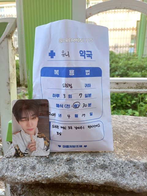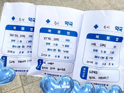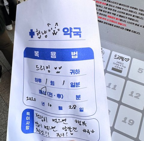 음방 사녹 역조공으로 직접 꾸민 약국봉투에 간식 넣어줌