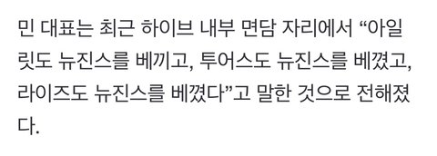 라는 식으로 민희진이 얘기했다는데