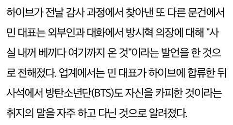민희진 찐으로 방시혁이 자기 베꼈다고 생각하나본데?
