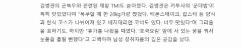 가서 20Kg 살찐 이유가 밥이 너무 맛있어서래 ㅋㅋㅋㅋㅋ