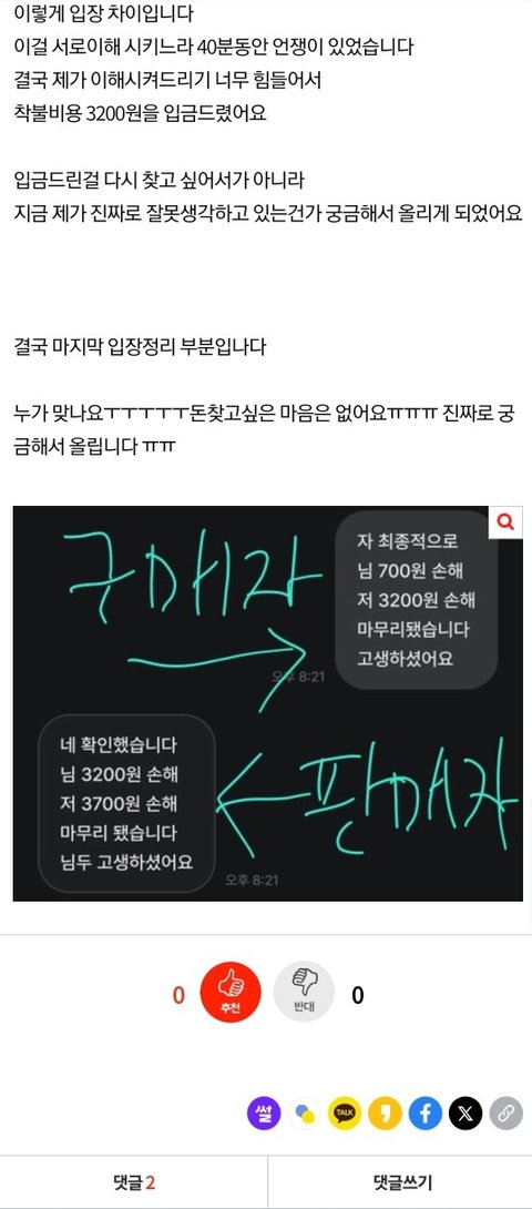 그러면서 자기가 틀렸는데 판매자를 이해시키느라 40분의 언쟁이 있었대