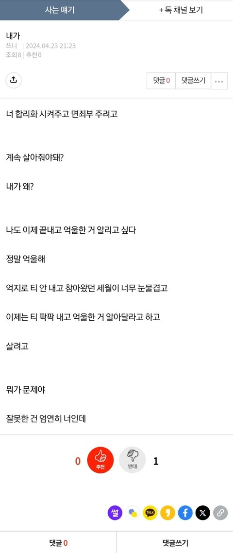 나는 저렇게 안 멍청한데 왜 나인 척 하면서 저렇게 멍청한 소리를 해 이 년들이 뒤지려고