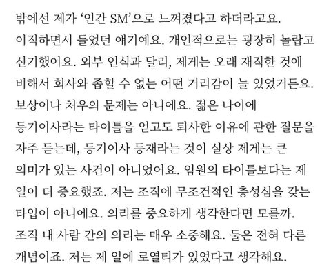 밖에선 제가 ‘인간 SM’으로 느껴졌다고 하더라고요