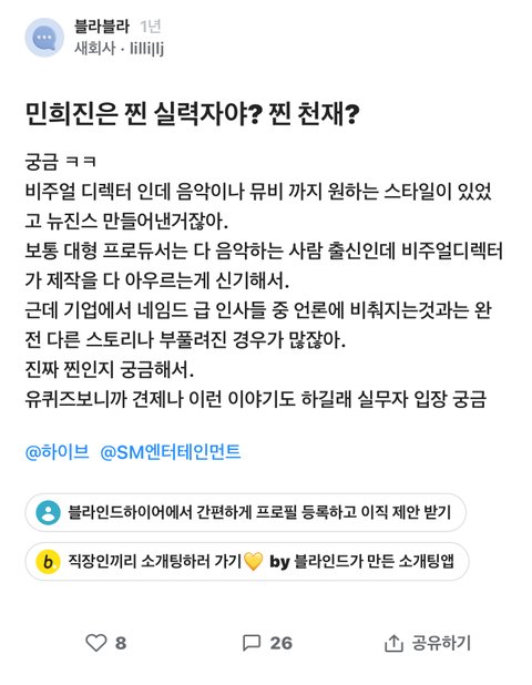 1년전 블라 민희진 글ㅋㅋ하이브 슴 직원들댓
