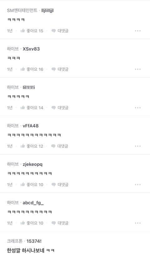 1년전 민희진 관련글에 하이브 슴 직원들 댓 ㅋㅋㅋ만 남겼는데