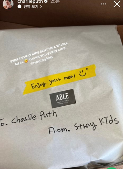 예전에 찰리가 스토리에 스키즈가 보낸 도시락 인증 올리고