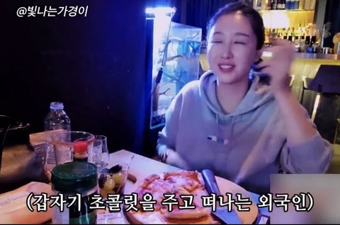 유튜브 실시간 라이브로 야외 먹방 하던 유튜버 갑자기 어떤 외국인이 와서 이미 깐 초콜릿을 주고감